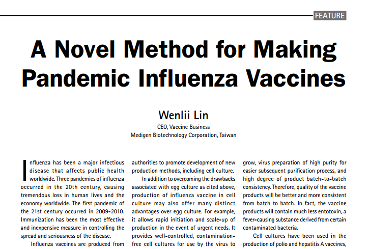 Publication - A Novel Method for Making Pandemic Influenza Vaccines