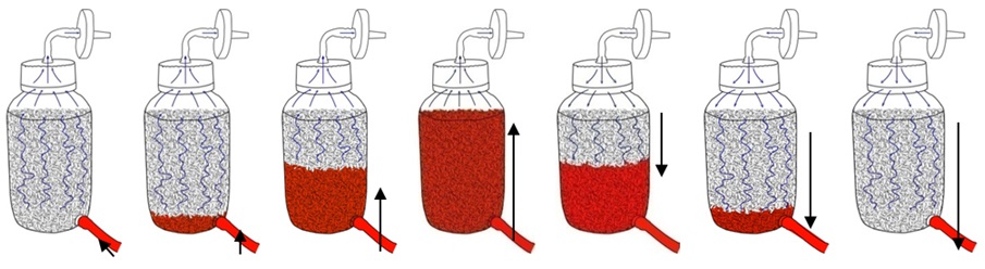 TideCell HD Cell Culture System inherits the same patented principle of BelloCell bottles. Packed with porous BioNOC II matrices, the matrix vessel functions as an artificial lung with a huge contact surface for nutrition and aeration for cell culture. The culture medium is periodically drawn from the external Mixing Bag into the matrix vessel to submerge the matrices and withdrawn from the vessel to expose the matrices, driven by the applied air pressure. Thus, cells entrapped inside the matrices are able to receive sufficient nutrients and oxygen, while metabolic wastes such as lactate and carbon dioxide can be efficiently carried away in a gentle manner. The concept of the design is to solve problems (shear stress, limited oxygen supply, and low cell density) frequently occurring on the commercial models, and to simplify the operation.